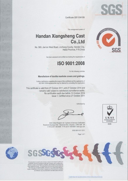 2001年1月通過(guò)ISO9001國(guó)際質(zhì)量體系認(rèn)證,并于2011年榮獲EN124產(chǎn)品認(rèn)證。